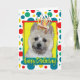 Celebrate a birthday with this whimsical Cairn Terrier Dog Greeting Card. With a cupcake balanced on it's head, this design is sure to bring a smile and giggles! BTW, This design has several versions, with different background colors. There is also an invitation to a Party version.