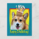 Celebrate a birthday with this whimsical Corgi Dog Greeting Card. With a cupcake balanced on it's head, this design is sure to bring a smile and giggles! BTW, This design has several versions, with different background colors. There is also an invitation to a Party version.
