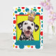 Celebrate a birthday with this whimsical Dalmatian Dog Greeting Card. With a cupcake balanced on it's head, this design is sure to bring a smile and giggles! BTW, This design has several versions, with different background colors. There is also an invitation to a Party version.
