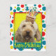 Celebrate a birthday with this whimsical GoldenDoodle Dog Greeting Card. With a cupcake balanced on it's head, this design is sure to bring a smile and giggles! BTW, This design has several versions, with different background colors. There is also an invitation to a Party version.