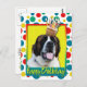 Celebrate a birthday with this whimsical Saint Bernard Dog Greeting Card. With a cupcake balanced on it's head, this design is sure to bring a smile and giggles! BTW, This design has several versions, with different background colors. There is also an invitation to a Party version.