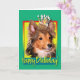 Celebrate a birthday with this whimsical Sheltie Puppy Dog Greeting Card. With a cupcake balanced on it's head, this design is sure to bring a smile and giggles! BTW, This design has several versions, with different background colors. There is also an invitation to a Party version.