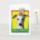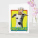 Celebrate a birthday with this whimsical Whippet Dog Greeting Card. With a cupcake balanced on it's head, this design is sure to bring a smile and giggles! BTW, This design has several versions, with different background colors. There is also an invitation to a Party version.