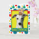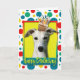 Celebrate a birthday with this whimsical Whippet Dog Greeting Card. With a cupcake balanced on it's head, this design is sure to bring a smile and giggles! BTW, This design has several versions, with different background colors. There is also an invitation to a Party version.