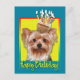 Celebrate a birthday with this whimsical Yorkshire Terrier Dog Greeting Card. With a cupcake balanced on it's head, this design is sure to bring a smile and giggles! BTW, This design has several versions, with different background colors. There is also an invitation to a Party version.