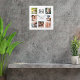 A wall clock as a gift for a 50th (or any age) birthday for a woman, celebrating her life with a collage of 7 of your photos. Personalize and add a name, age 50 and a date. Date of birth or the date of the anniversary. Black and gray colored letters. A chic white background.