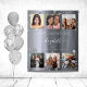 A gift from friends for a woman's 21st (or any age) birthday, celebrating her life with a collage of 6 of your high quality photos of her, her friends, family, interest or pets. Personalize and add her name, age 21 and your names. White text. A chic faux silver looking background. Her name is written with a modern hand lettered style script with swashes. Decorated with stars dripping.