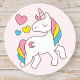 Birthday. Cute Unicorn with Cute Hearts. Classic Round Sticker