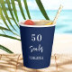Birthday dark blue white script men paper cups