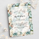 Dusty green and white flowers as background. Personalize and add a name and party details.