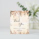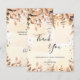 A thank you card for a 50th (or any age) birthday. A golden watercolored background decorated with golden eucalyptus and faux gold glitter sparkles. On front large black colored hand lettered script and the text: Thank You, your text, title and a date.