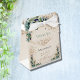 A white background decorated with eucalyptus greenery and golden leaves and faux gold glitter dust. Personalize and add a name and age. With the text: Thank You.