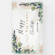 Celebrating a 21st (or any age) birthday. A chic white background. Decorated with green watercolored eucalyptus leaves, sprigs, greenery, faux gold leaves and golden glitter spots. Personalize and add the age, name and a date. Black and golden letters.