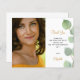 A modern and elegant photo thank you card. A chic white background decorated with eucalyptus greenery. Personalize and add your photo, your thank you note and name.