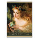 Birthday greeting card inspired by a beautiful fairy painting by French-English artist Sophie Gengembre Anderson (The fairy queen, 1869). The picture shows a lovely fairy girl with a crown of colorful butterflies. She seems to be holding a gift in her hands, a small round drawstring bag, adorned with gold thread and pearls.