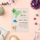 A clear frosted background decorated with watercolored cactus, a large green and blue glass with a Margerita coctail, colorful maracas Personalize and your name and details.