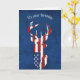 Deer silhouette with an American flag design on blue leather background for a birthday.