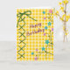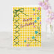 Charming cheerful yellow gingham card to with spring flowers and green lace tie ready to send someone who is special