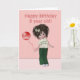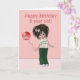 A cute little pixie doll wishes a happy birthday to an eight year old. This little doll like figure has dark spiked hair with a bow. She is wearing green pants and a tee shirt that says "Happy Birthday". She has a red balloon tied to her wrist. This card is available for other ages and for other occasions. You can see them in the "pixie' section of my card store. http://www.zazzle.com/mycardstore