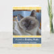 PURRfect Birthday Wishes for Friend. Card features a photograph of a cute Applehead Blue Point Siamese cat in a laundry basket. Birthday paper greeting card for a special person who loves all things feline. Yellow and white plaid background. Image and verse copyright © Shoaff Ballanger Studios.