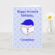 The text on the front says, "Happy Birthday Grandson in a blue that matches the hat.