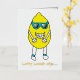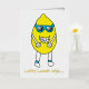 Are you looking for a humorous birthday card? The cover of this card features a lemon smiling and wearing sunglasses. The inside text says, "He'll be sour if you don't have a happy birthday!". The inside text can be changed and customized to fit your needs.