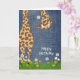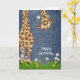 Cute giraffe with white daisy on blue jean denim background for general birthday.