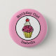 This cute button was made for a birthday girl who loves cupcakes! Button has a vanilla cupcake in the center, topped with pink and white frosting and a cherry on top, surrounded by a pink border. Text above the cupcake reads "Birthday Girl" and text below is a name for you to personalize with the birthday girl's name. Sweet!