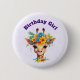 Birthday Girl Cute Giraffe with Floral Crown Button