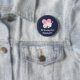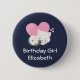 Birthday girl button with an adorable graphic illustration. A white kitty cat with a cute paw print image on her fur. Sleeping peacefully. A big pink heart behind her and some little stars too. Dark blue background.
