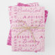 Add the name of the Birthday Girl to this cute assortment of pink personalized birthday wrapping paper for a delightful surprise when you deliver her gift. Perfect for both kids and adults, the three designs can be personalized independent of each other if you are customizing this pink gift wrap for sisters or multiple grandchildren. All three birthday wrapping paper sheets feature Birthday Girl along with the name you add. The first two sheets are a typography collage style design while the third sheet is a stripe pattern in three shades of pink. Celebrate your favorite birthday girl with custom birthday gift wrap in pink.