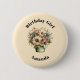 Birthday Girl Whimsical Flowers in a Planter Pot Button