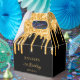 Elegant, classic, glamorous and girly for a 21st (or any age) birthday party favors. A chic black background color. On the front and the back: Personalize and add a name, age 21 and a date. The name is written with a modern hand lettered style script. Decorated with faux gold drips, paint dripping look. Golden colored text.