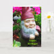 Photograph of a weathered garden gnome wishing a Happy Birthday.