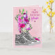 One of my friends loves shoes so this card was an east fit! The size offered and the opportunity to make the card so personal made it the right choice. Always arrives in perfect condition because of the careful packaging by the Zazzle staff. I loved the vibrant colors of the flowers with the subdued color of the shoes. The print was clear and you even have a choice of which font to use.