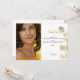 Add 3 of Your birthday photos, vertical size, a date, name, and the thank you note. A classic navy blue background with white text and frame. Personalize and add your thank you note and name.