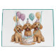 Cute cartoon illustration of Goldendoodle dog wearing a birthday hat with a birthday cake and balloons. Perfect for pet lovers or dog parents.