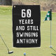 60 years and still swinging, funny 60th birthday quote golf towel. Perfect for dad, grandad, stepdad. Golfer gift idea. You can personalize the year and name.