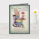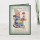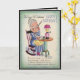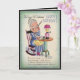 On the front is an old lady sitting in a rocking chair writing a letter with a quill pen. She is wearing a blue dress with a yellow apron. On the table sits a lamp and ink. On the inside she is looking in her dictionary. Just a light ribbing for a over the hill gal on her birthday! Also see matching stamp. Beautifully designed by hand birthday card. All card designs are at least 55 years old, and are digitally recreated for todays use.