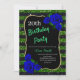 Birthday Green Black Stripe Glitter Deep Blue Rose Invitation