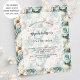 Dusty green and white flowers as background. Personalize and add a name and party details.