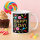 A happy birthday design with lots of birthday greeting candles. This design looks really effective on this Mug