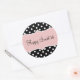 Pink, black, and white happy birthday sweet 16 sticker labels in a stylish and trendy cute design that includes black and white polka dots and an emblem you can personalize online that says Happy Sweet 16