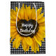 Birthday Heart Sunflower On Gingham Medium Gift Bag