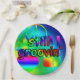 A graphic design of a rainbow still grovin sign by artist/designer Charmaine Paulson on a party plate.