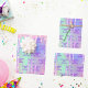 For a feminine and glamorous Sweet 16, 16th (or any age) birthday. A rainbow, unicorn holographic background in pink, purple, rose gold and mint green with faux glitter drips, paint dripping look. Personalize and add a date, name and age 16. The name is written with a trendy hand lettered style script.