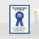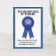 A fun card for someone approaching "over-the-hill" or already beyond it. Place the appropriate age on the large blue-ribbon award emblem below the text that announces "The advantages of turning . . . ". Bottom text also indicates, "We have checked with the U.N., the Supreme Court and the Bureau of Statistics . . ." Inside message says "But hang on, we're still checking." The inside message can be easily edited by using the template. For other changes (different type fonts, color, size or placement or to add to the message) select "customize further" from the "personalize it" section. Your name ("signature") can also be added - or simply removed so you can personally sign the card at home. Caution: send only to those who have a sense of humor about their age! Be sure to check out the options on the right for a different size card, etc.