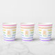 Birthday in White Circle Pastel Rainbow Stripes Paper Cups