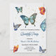 Birthday invitation featuring colorful butterflies with sparkling effects, set against a white background. Text invites guests to a 5th birthday party.