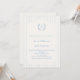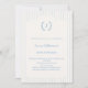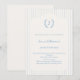 Featuring soft vertical pinstripes and a delicate monogram framed by a laurel wreath, this design blends timeless quiet luxury with a light coastal aesthetic. The muted dusty blue typography against a warm ivory background creates a fresh, airy feel—perfect for summer dinners, seaside gatherings, yacht club parties, or elegant beachside celebrations.